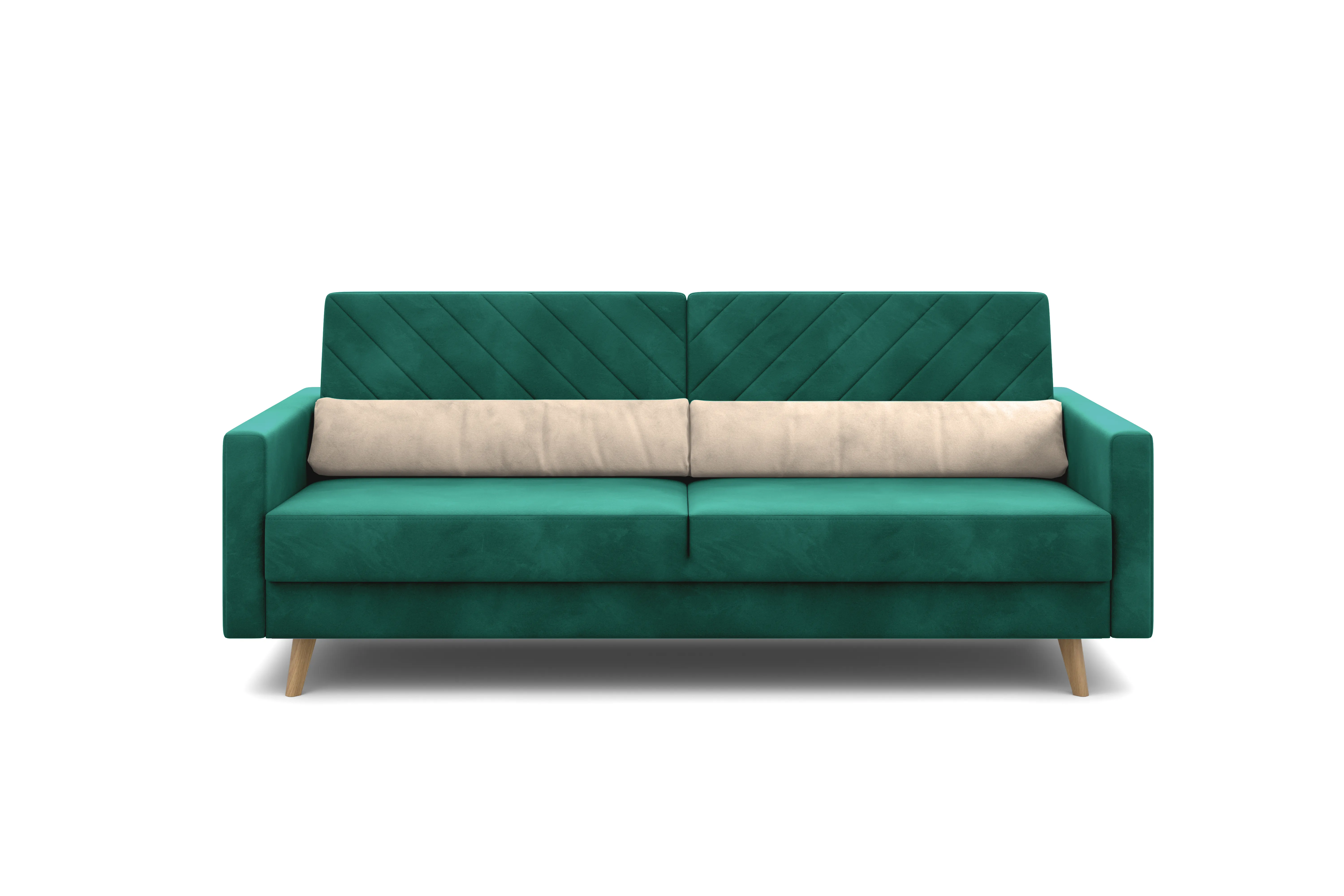 Обивка из велюра не только роскошно выглядит, но еще и практична в эксплуатации, а также имеет отличные показатели износоустойчивости.Высокие опоры из массива березы придают дивану визуальную лёгкость, декоративная отстрочка на подушках и боковинах придают приятный объем. Подушки из велюра контрастного цвета входят в комплект.