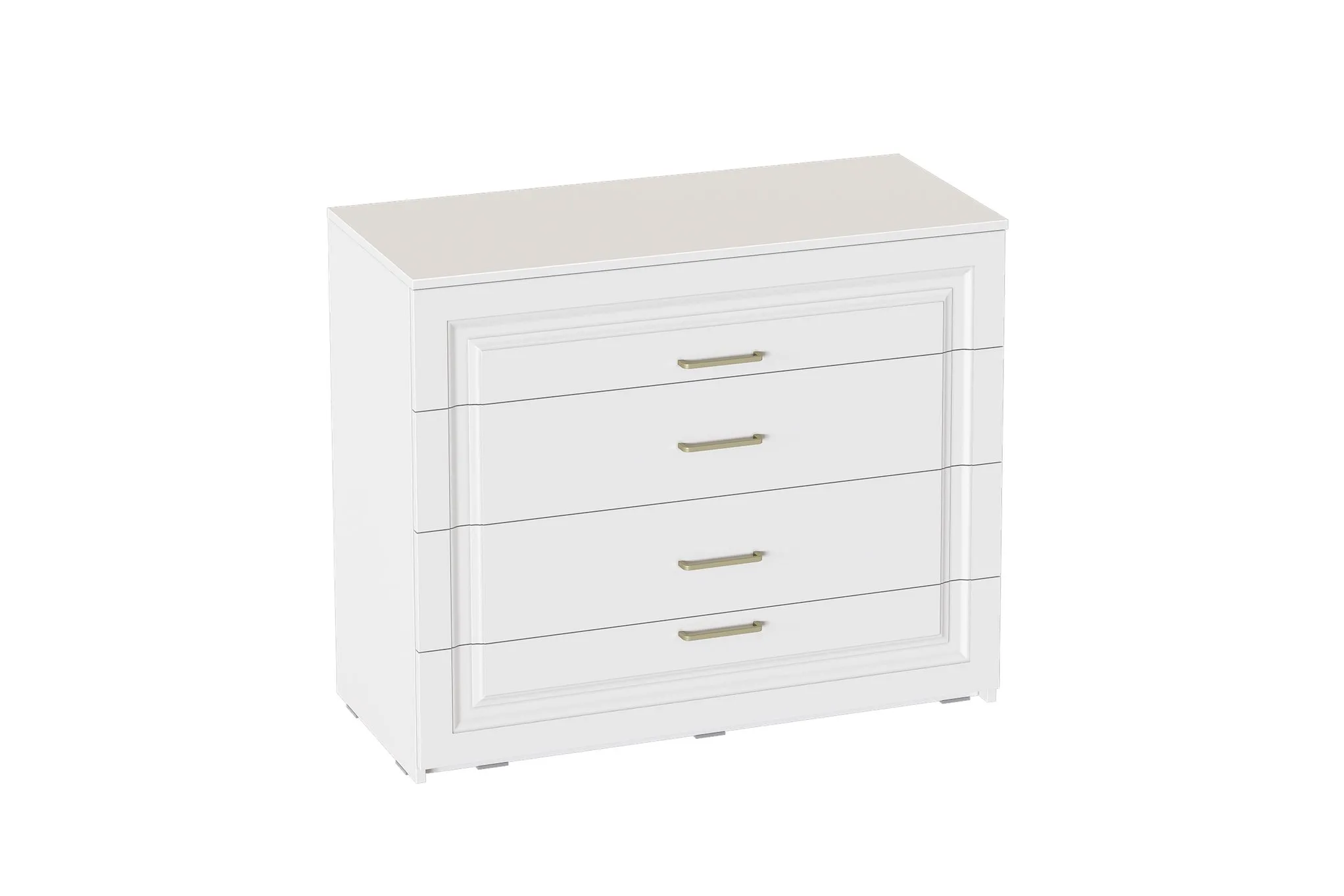 Комод выполнен в цвете Айс 06 / Белый Аляска. Классическая фрезеровка фасадов и ручки-скобы из брашированного золота придают изделию особый шарм и элегантность. Ящики полного выдвижения на шариковых направляющих скользят бесшумно и плавно. Дно и задние стенки выполнены из ХДФ. На опорах размещены войлочные подпятники.