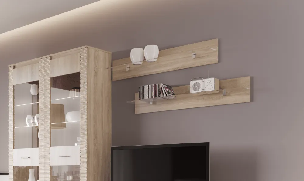 Полка "Элана" — эталон по всем параметрам. Модель имеет оптимальный цвет для комбинирования с другими оттенками и создания оригинальной общей концепции, а размер позволяет рационально использовать полезную площадь.