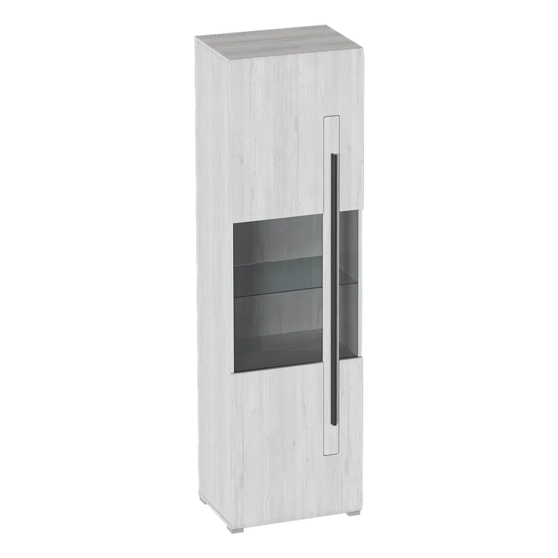 Внутреннее пространство шкафа разделено на три отсека, закрываемые одной общей дверью с затемненным стеклом. В верхнем и нижнем отделении расположено по одной стационарной полке. В среднем отделении расположена стеклянная съемная полка.
