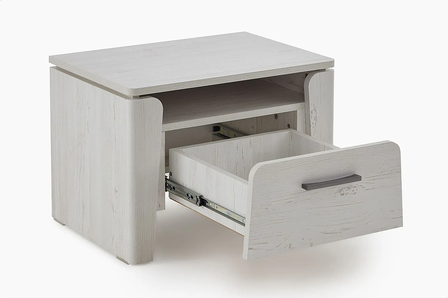 Благодаря компактным размерам, она не занимает много места и позволяет рационально использовать пространство спальни. Тумба оснащена одним ящиком, который идеально подходит для хранения личных вещей и аксессуаров. Шариковые направляющие обеспечивают плавный и бесшумный ход ящика, позволяя быстро и легко найти нужную вещь.
