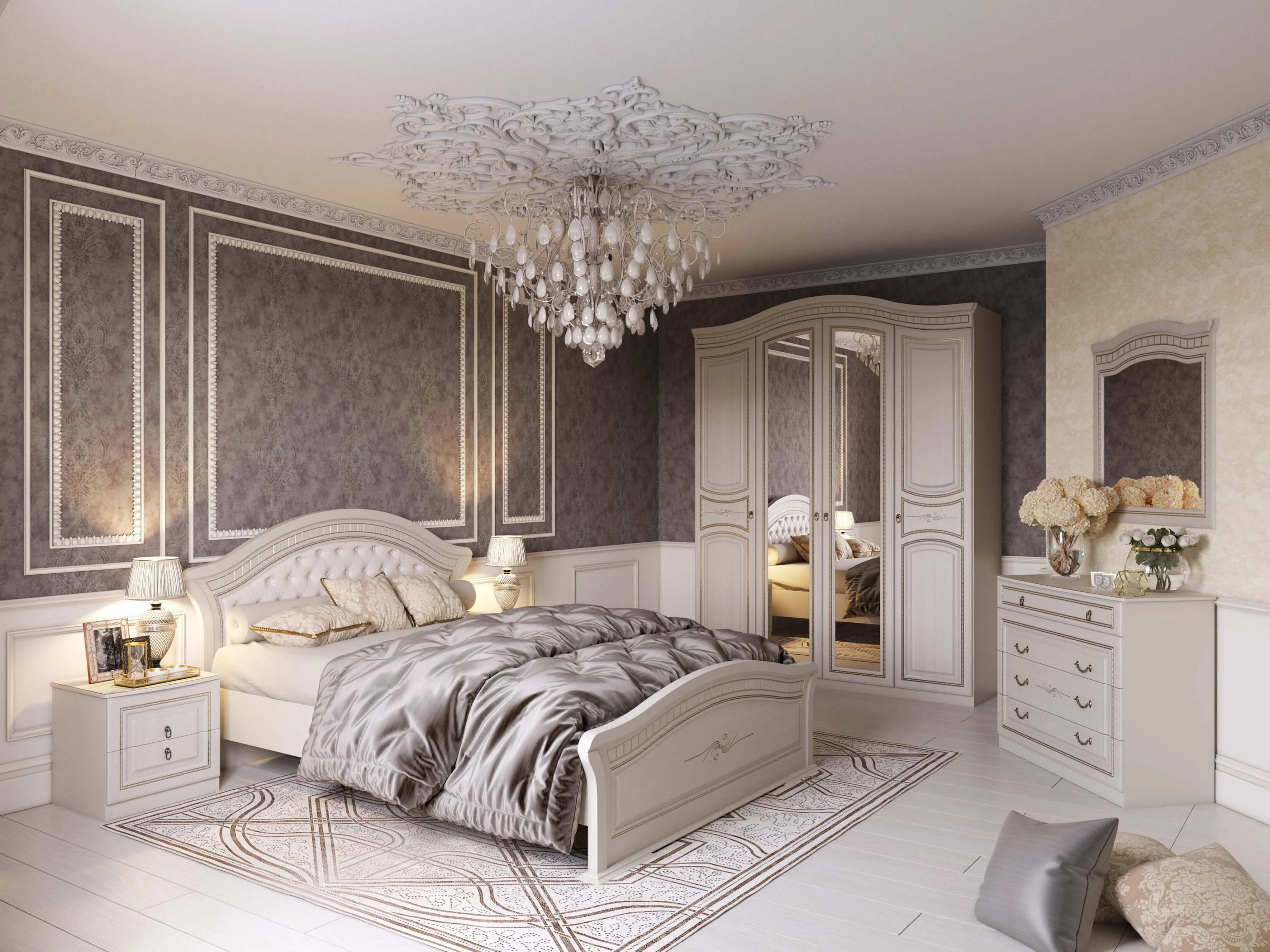 Рама декорирована элегантной фрезеровкой с эффектом патины, изготовлена из ЛДСП толщиной 16 мм и МДФ, что придает изделию прочность и долговечность.
